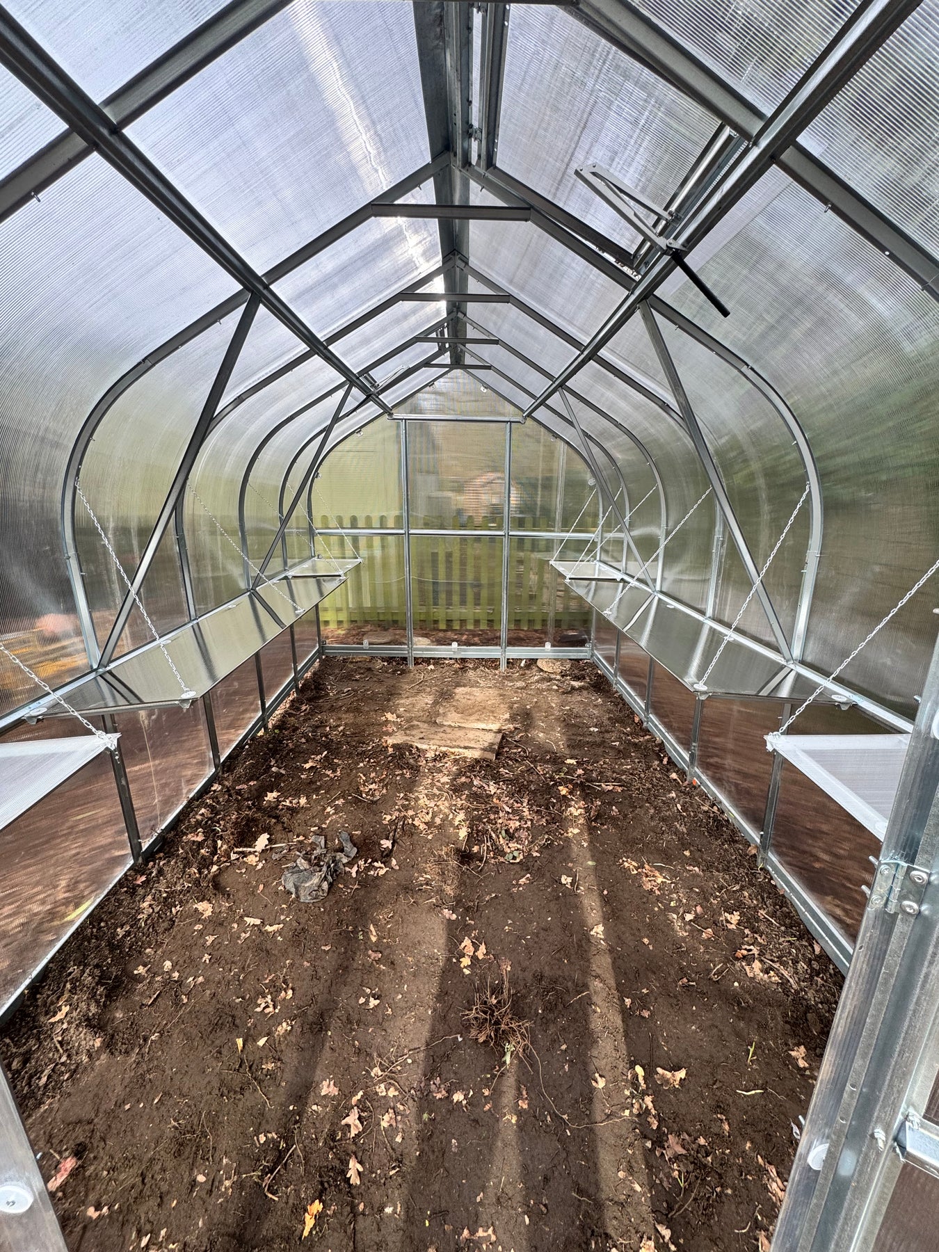 It is always nice to have a place for potting and sorting seeds and more inside the greenhouse. With one or more of the elegant, light greenhouse shelves, you will have room for organising your greenhouse. The clear shelf in polycarbonate will blend in elegantly inside the greenhouse together with the galvanised steel frame and aluminium profiles.